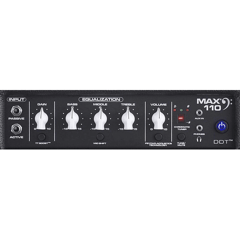 El amplificador combo MAX-110 ofrece más graves en un paquete de ahorro de espacio. Con 100 W de potencia que incluye protección para parlantes DDT ™ y un woofer de 10 pulgadas, el Peavey MAX-110 está listo para muchos conciertos y ensayos. Posee TransTube que le ofrece aumento de ganancia, la sección EQ incluye un EQ de 3 bandas y un botón para Mid-shift. El Max 110 también incluye una mejora psicoacústica de gama baja que agrega bajos.